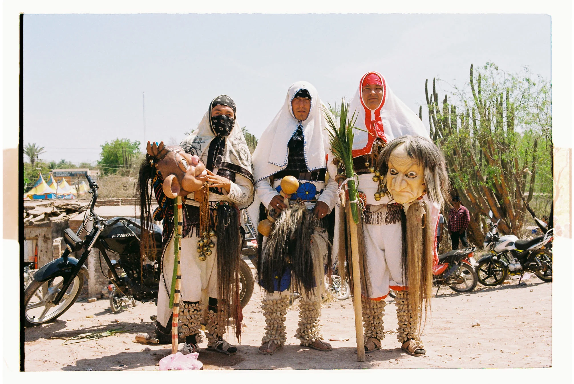 The dancers, known as fariseos or judíos, are central to Yoreme Holy Week rituals across northern Sinaloa and southern Sonora. In the month before Easter, they lead processions called contis, visiting homes that display a wooden cross to welcome them. They dance to drums, collecting offerings that sustain the community’s ceremonies. By the end of Lent, they’ve spent a month masked, hidden from their families, atoning through exhaustion and repetition. On Easter Sunday, they burn their masks in a collective release.