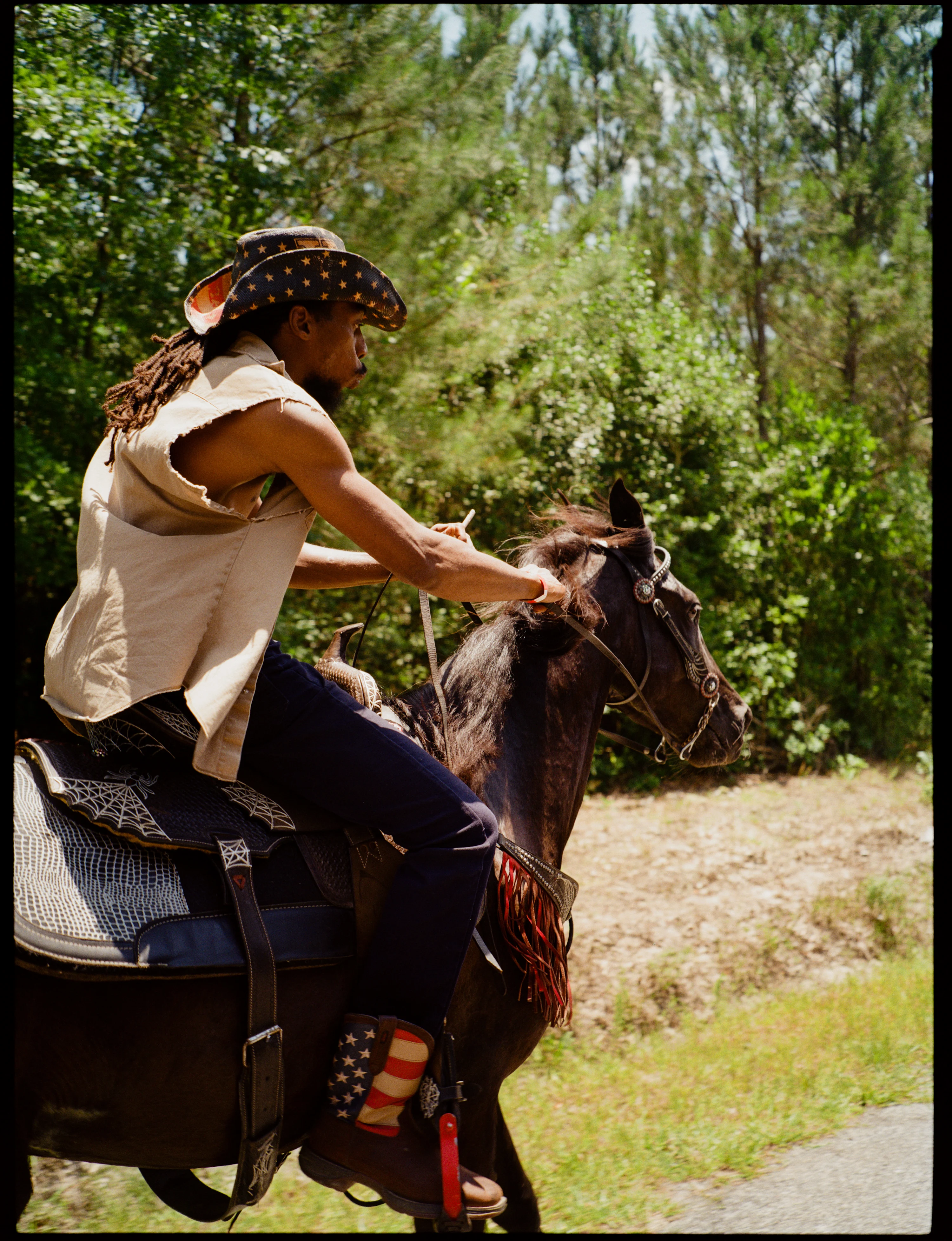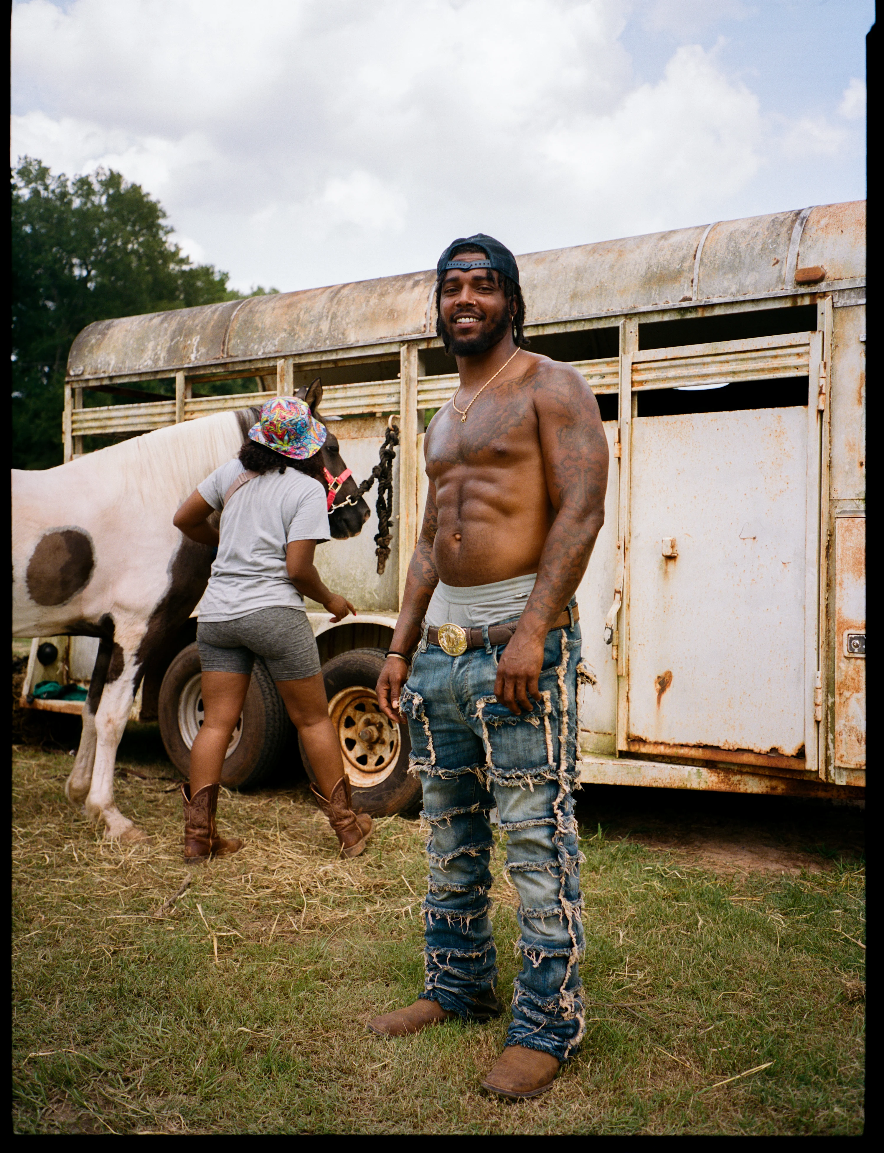 “The funny thing is no one actually got back to me before I got there,” laughs photographer Chad Mclean. After a full year of digitally immersing himself in the world of trail rides, horses and cowboys, he had finally landed in the American South, alone. The plan was to spend the next month diving deep into the culture that had captured his fascination virtually, for his personal project “Black Horse Power.” “I went alone because I thought, let me go there and fully be a person… I even went the long way round with [release] forms because I didn’t want to scare anyone,” he says, instead opting to swap socials and nurture the connections he made over time. “I’ve already got [this] British accent, I already come across as proper and I’m out in the country…I can’t tell you how many people asked me, why are you here? What’s going on? You came from London, for this?” Mclean recalls.