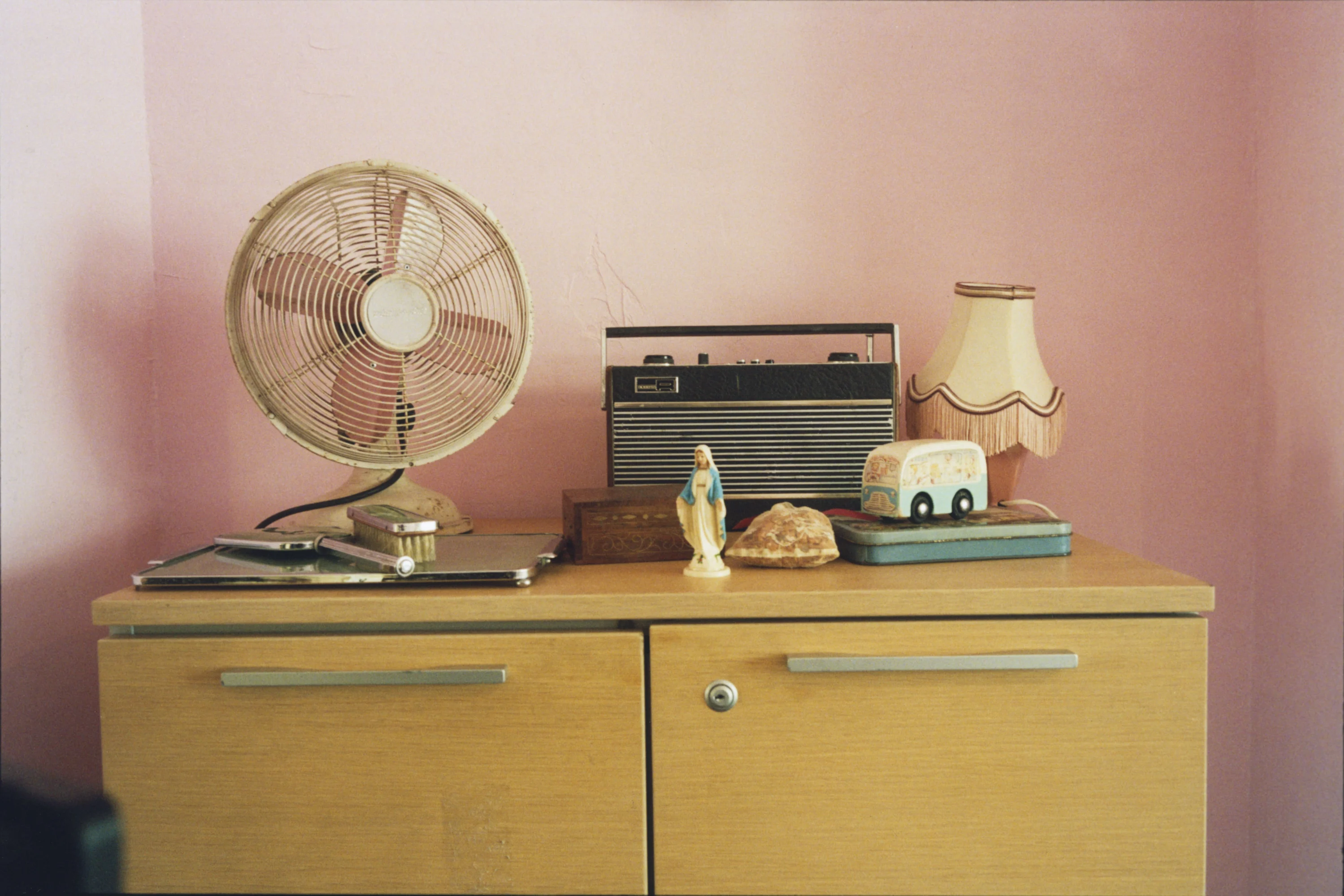 Like Naples itself, “Un Mondo Proprio” is defined by multiple atmospheres that are either juxtaposed to heighten a sense of contrast or overlaid, conveying a disorienting feeling. Among them, the heavy, almost insinuating presence of Catholic faith is especially noticeable: crosses, sacred statuettes and religious iconography occupy these young women’s otherwise irreverent spaces, appearing anywhere from their jewelry and tattoos to the shelves and walls of their homes.
