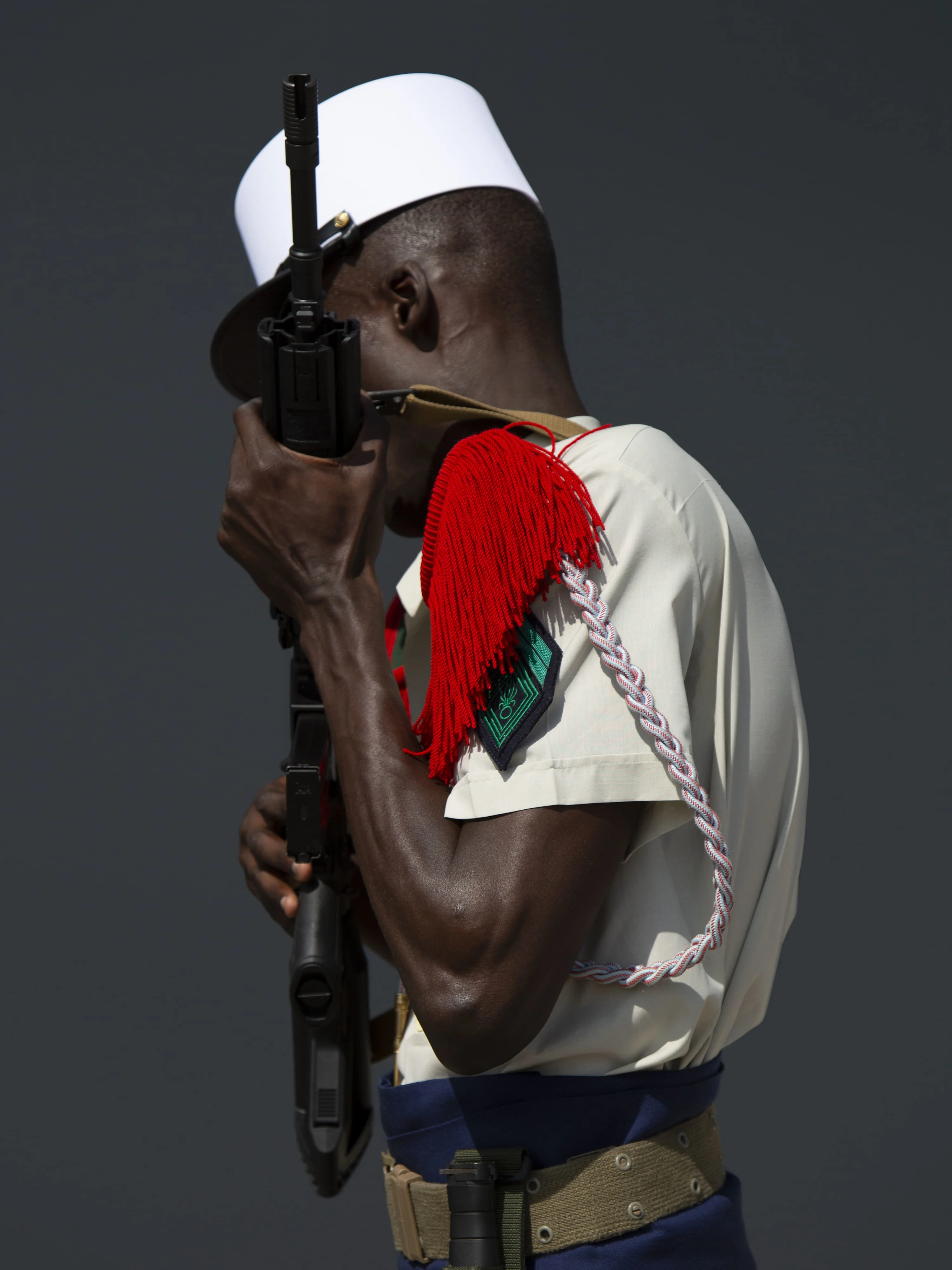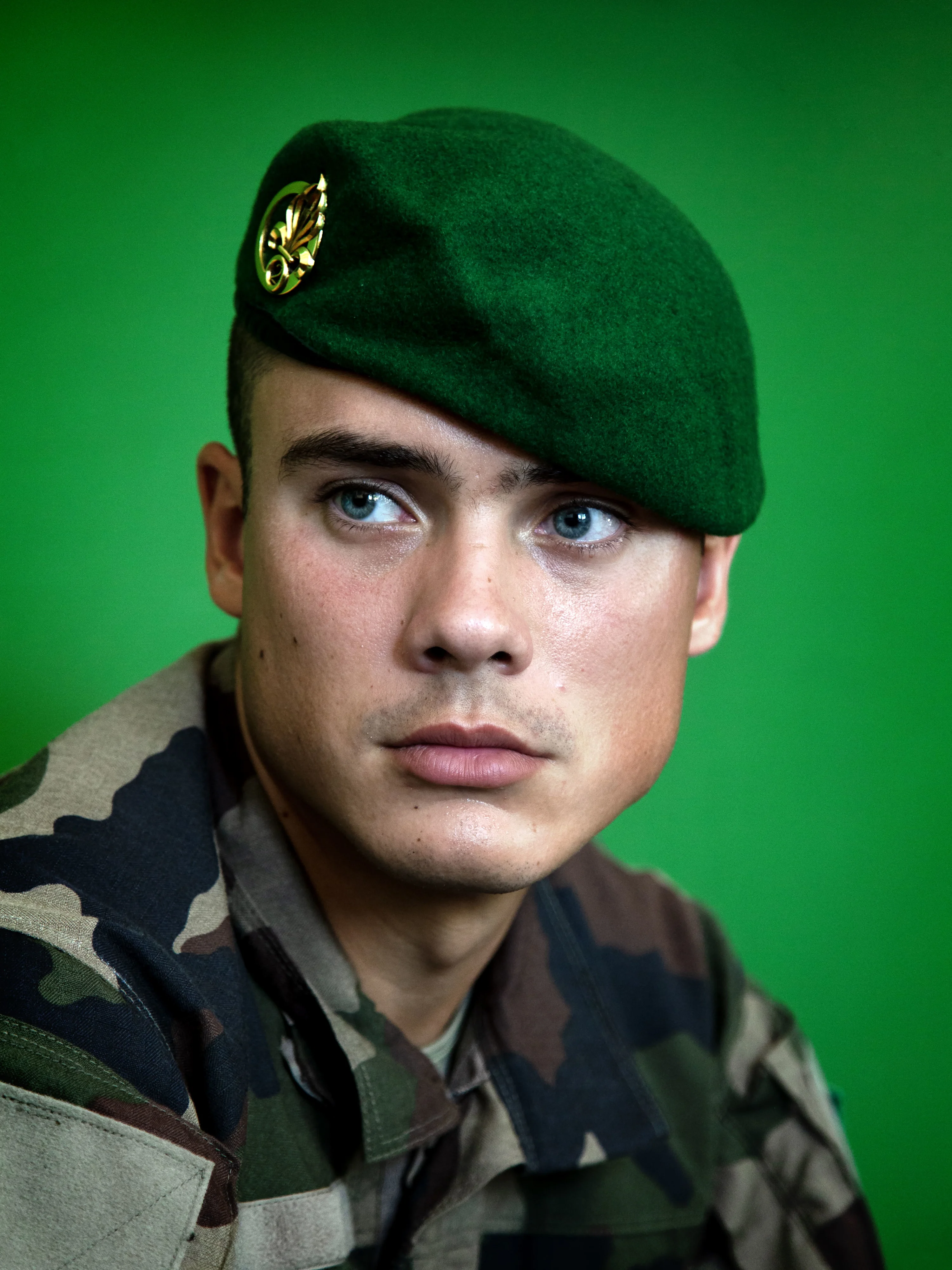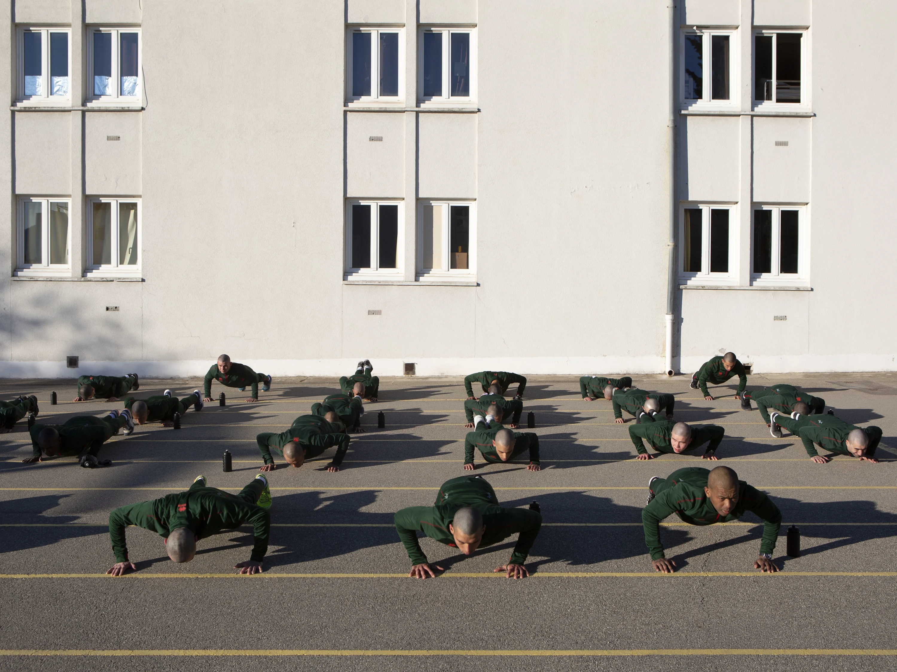 “These men have given up everything—their homeland, culture, language, family and friends— in the hope of a new life,” explains Joubert. “Some are fleeing war or poverty, a few are seeking to escape justice in their own country and others simply want to join a renowned military elite in search of adventure.” Once recruits have passed the difficult selection process, they undergo a series of compulsory rituals: shaving their head, being assigned a uniform, giving up their personal belongings and joining a strict training regime that enables them to build a new body that synchronizes with that of the collective. As Joubert puts it, “everything starts from scratch. The recruits are given a new identity with which they can start afresh, beginning a new life as a second chance. It’s this aspect of the Legion that particularly interested me.”