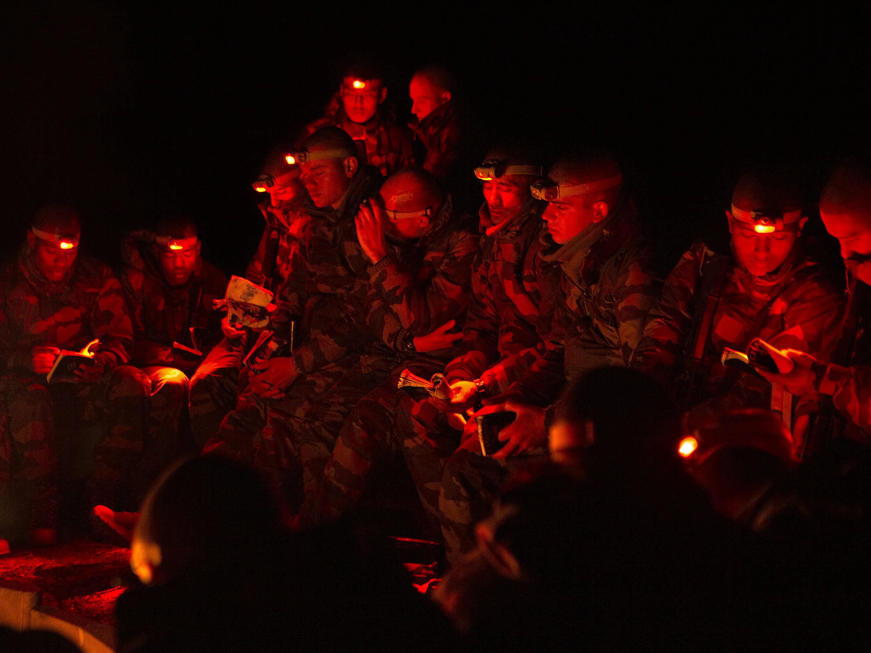 “I followed the young men as their day unfolded: waking up at 4 a.m., medical appointments, training, social gatherings and during their breaks,” explains Joubert about her creative process. “I work instinctively, producing thousands of images and then allowing the subject to reveal itself through a long and meticulous editing process. While I didn’t have a specific idea of the type of shot I wanted to take, I was looking to bring diversity to the hyper-masculine representations we associate with the army. I found it interesting to show moments of fragility and vulnerability in order to offer a more nuanced and sensitive vision of army life.”