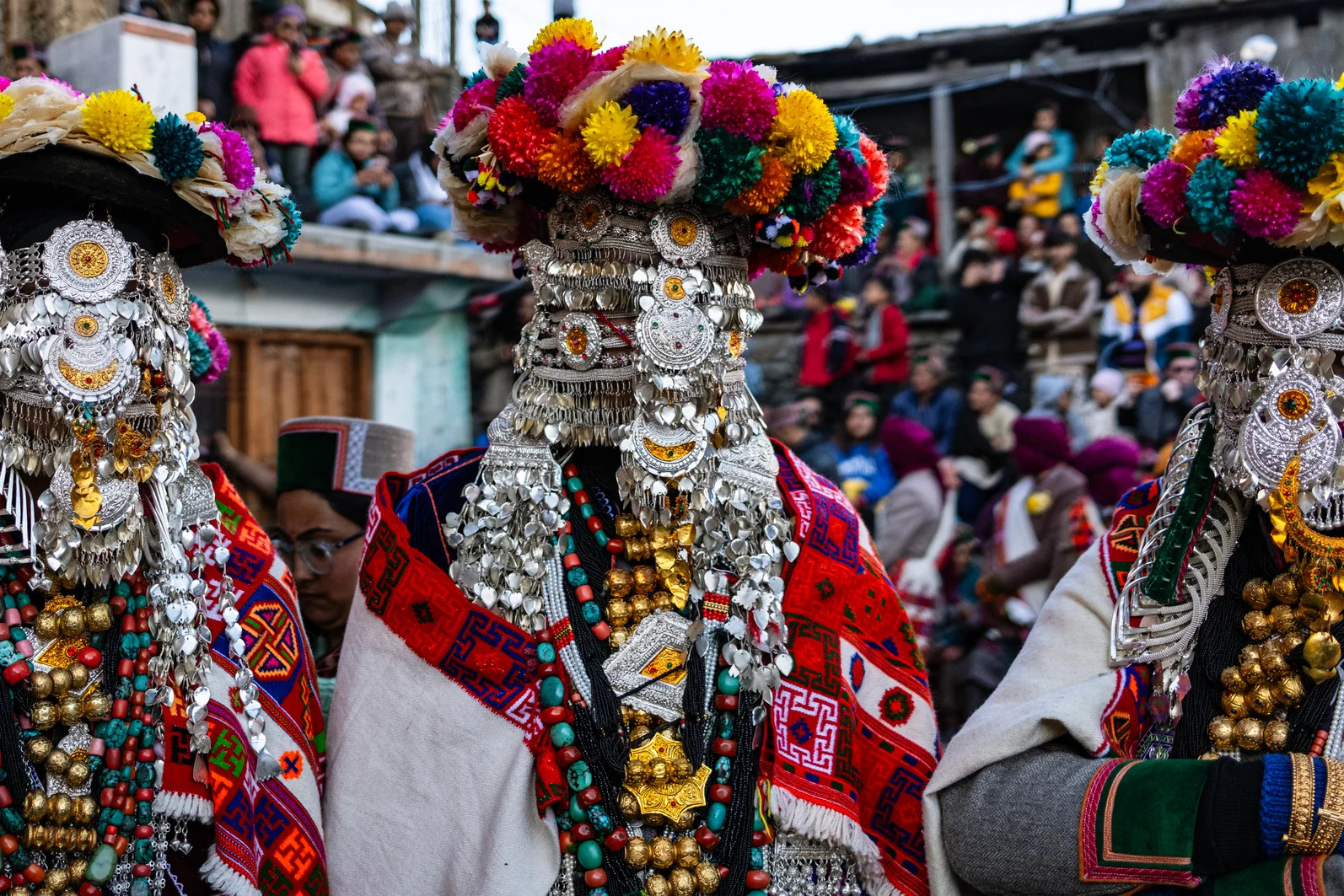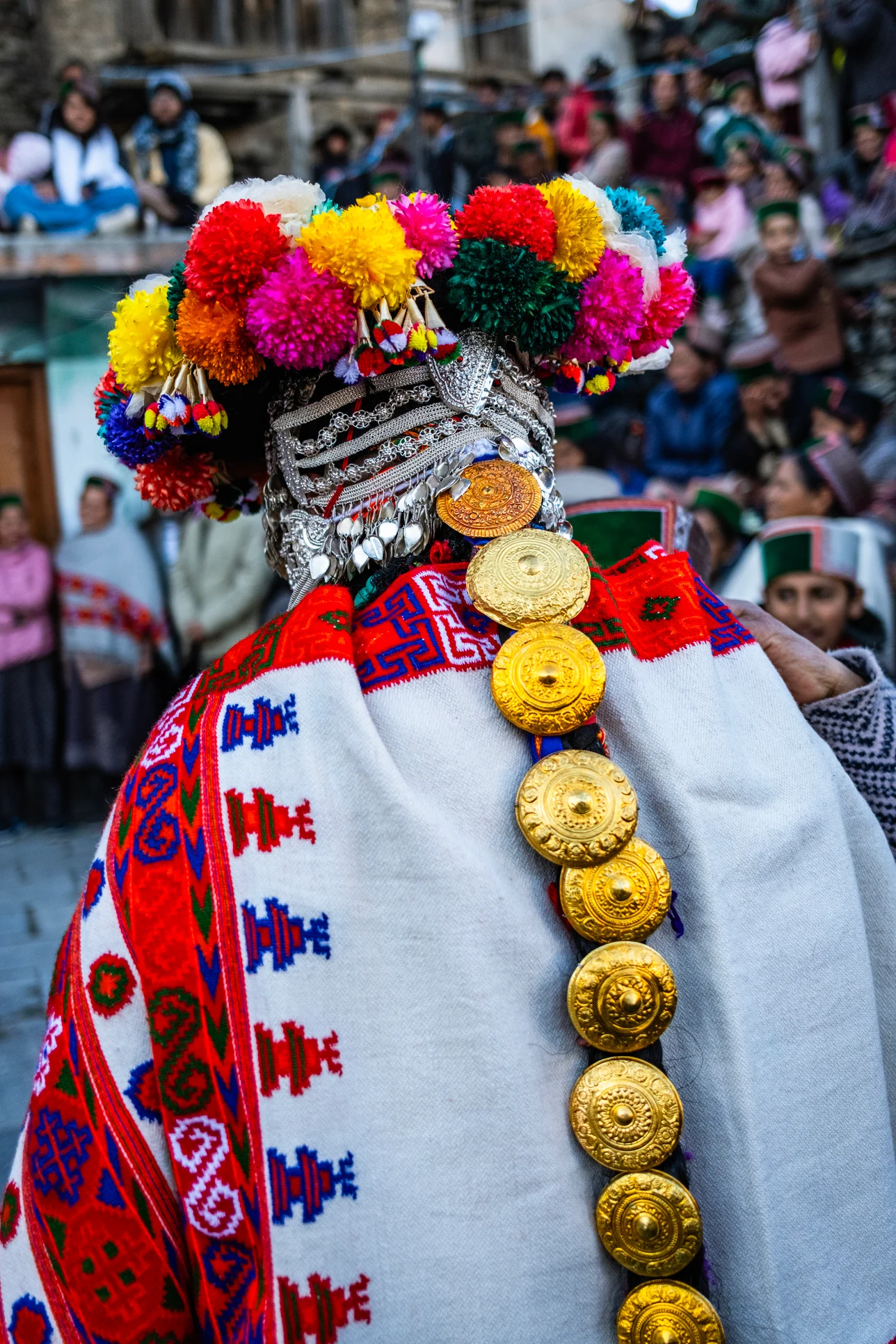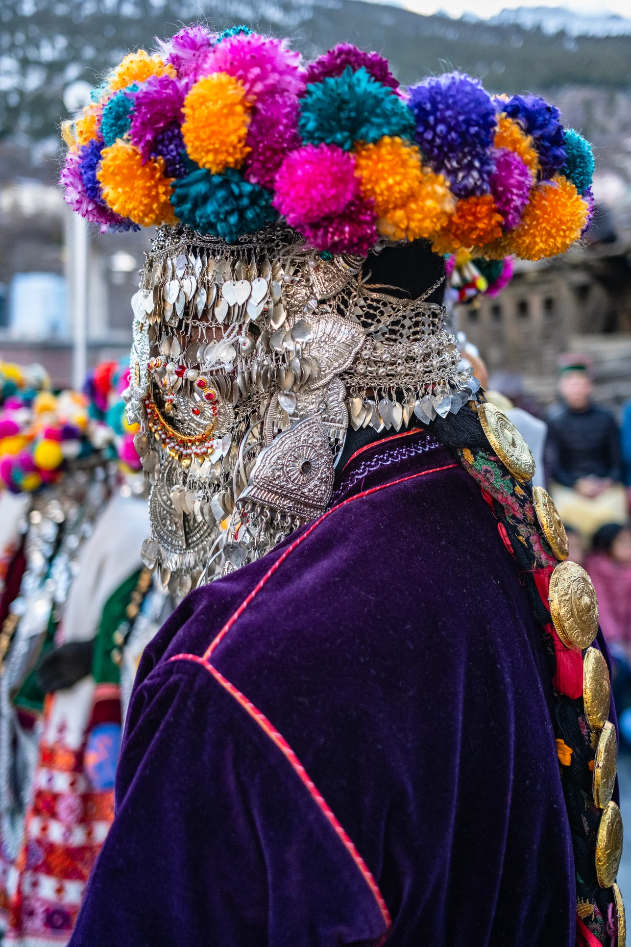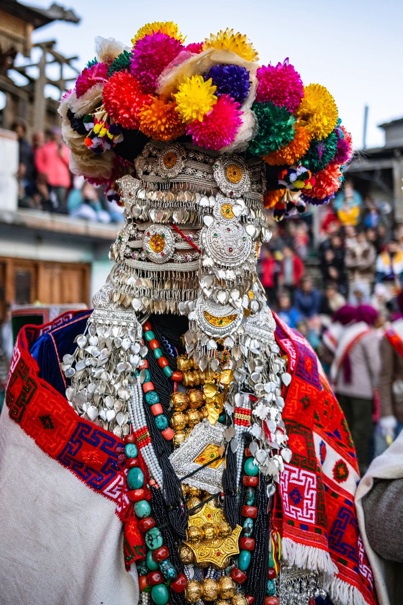 When you look at Singh’s pictures, an undeniable standout is the intricate silver jewelry that the men wear. The many lustrous layers glisten under the winter sun, while chunky black and turquoise beads and engraved gold plates hang heavy around their neck and shoulders. The photographer reveals each person wears precious jewels worth over $50,000 to the gathering. This isn’t a display of indulgence; the collection has been painstakingly crafted by ancestors and amassed by each family over generations. “It’s a very old symbol of their culture and wealth,” he says. “As urbanization creeps in, people are selling the gold and moving away for jobs. Wearing it during the festival is a reminder to preserve their beliefs.”