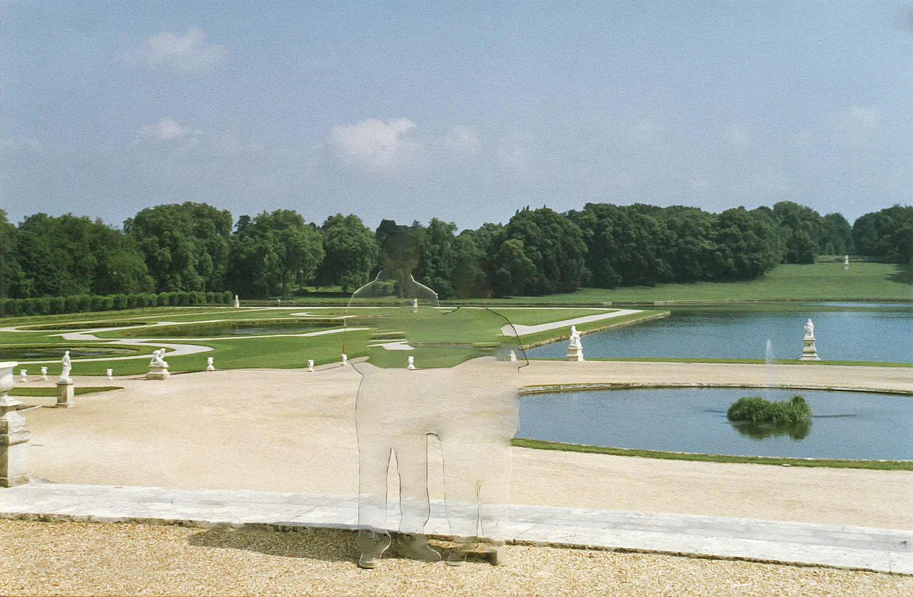 In her journey to collect these misplaced memories, Hua recalls a chapter in “The Origin of Others” by Toni Morrison. The author considers the structures of otherness in our era of mass migration, and within those broader themes, she talks about the act of remembering “as piecing together a puzzle,” says Hua. “I love this analogy, because that’s how you feel when you have missing elements of your history. You feel incomplete.” This closely relates to the technical process behind the Tropism project. First, Hua picks a family photograph that she connects with—“without trying to ask why”—and uses a simple algorithmic tool in photoshop to remove the figures and replace the gaps with visual matter based on the information surrounding it. “It’s like reinventing a story based on elements that already exist—I found this parallel very poetic,” she says.