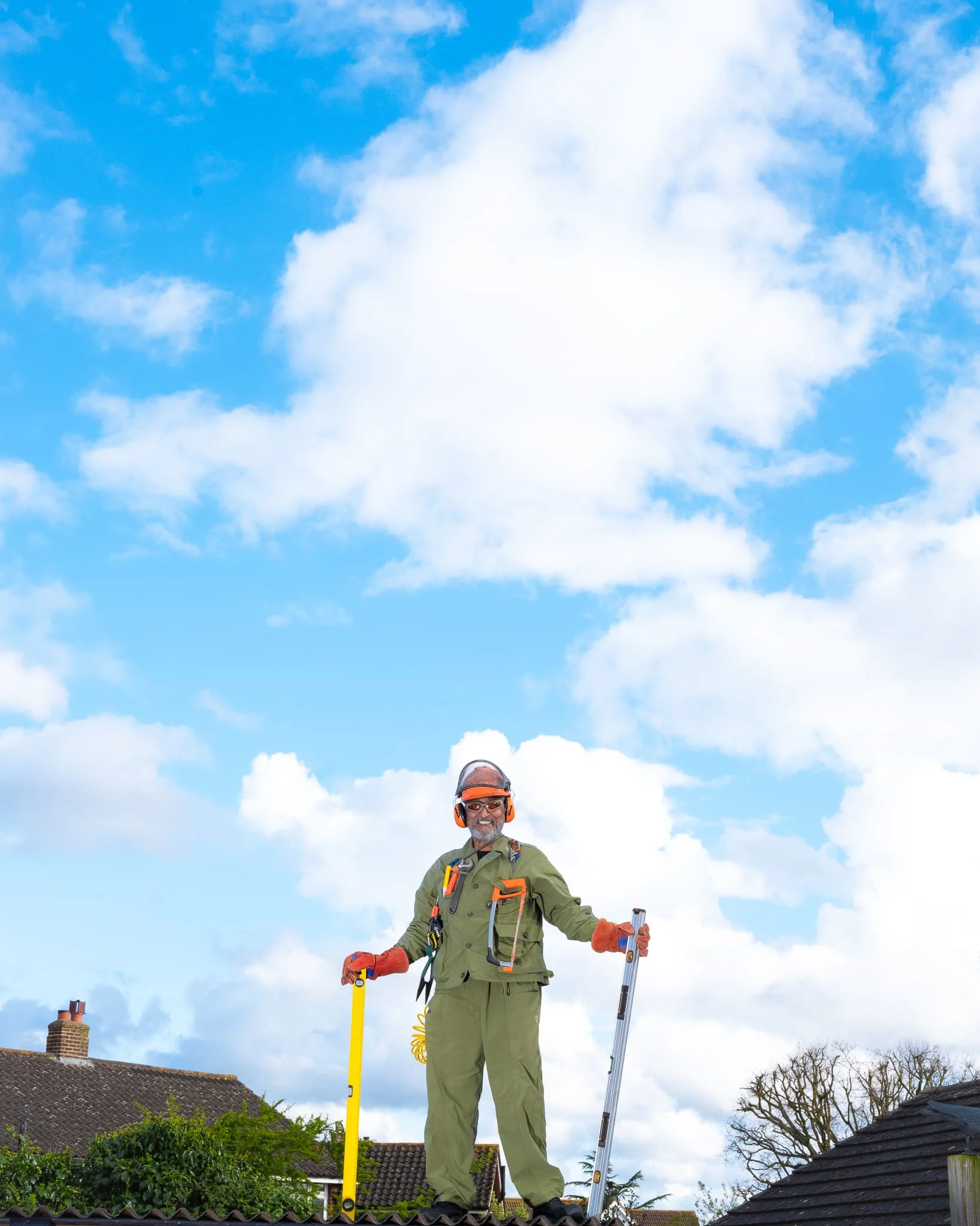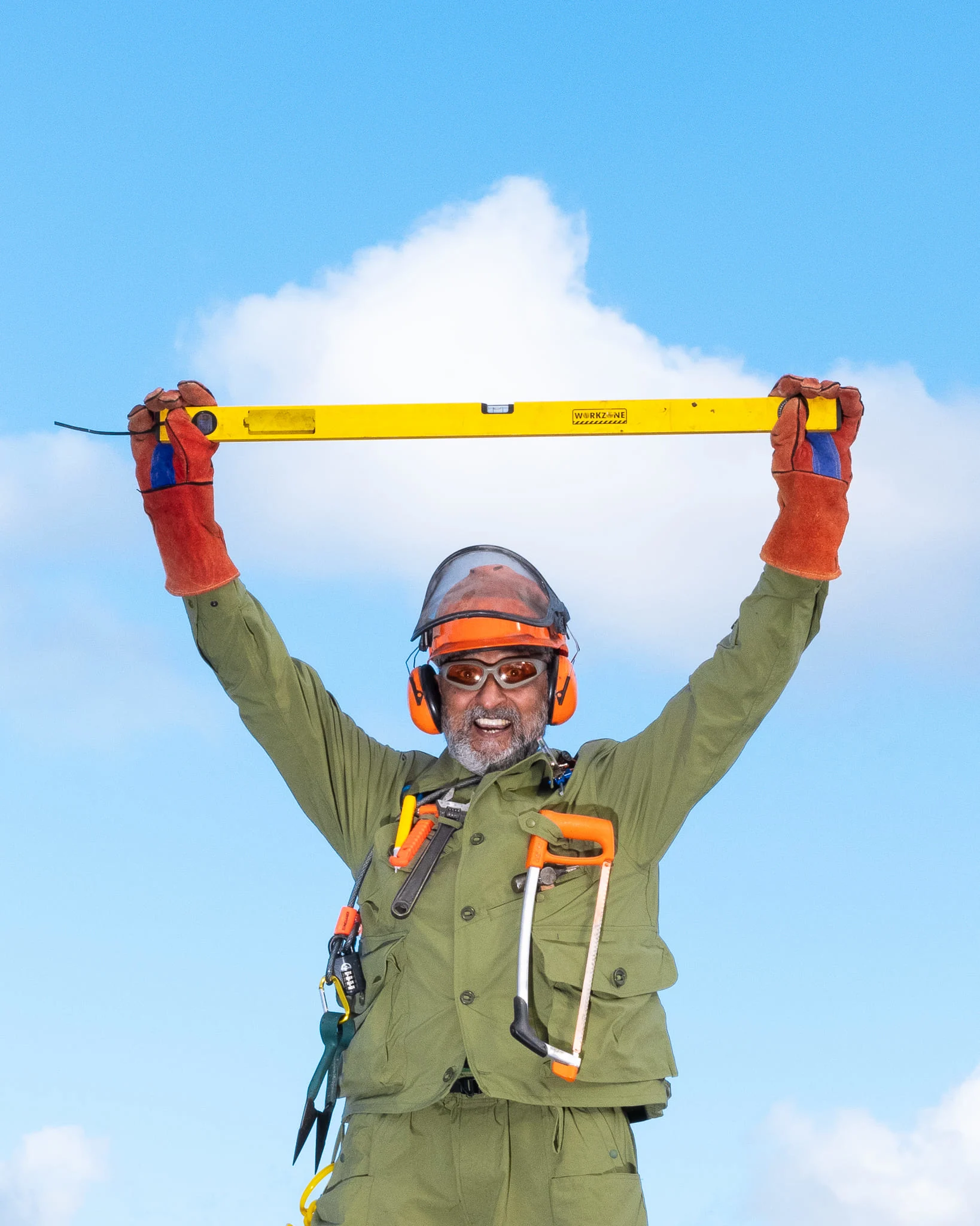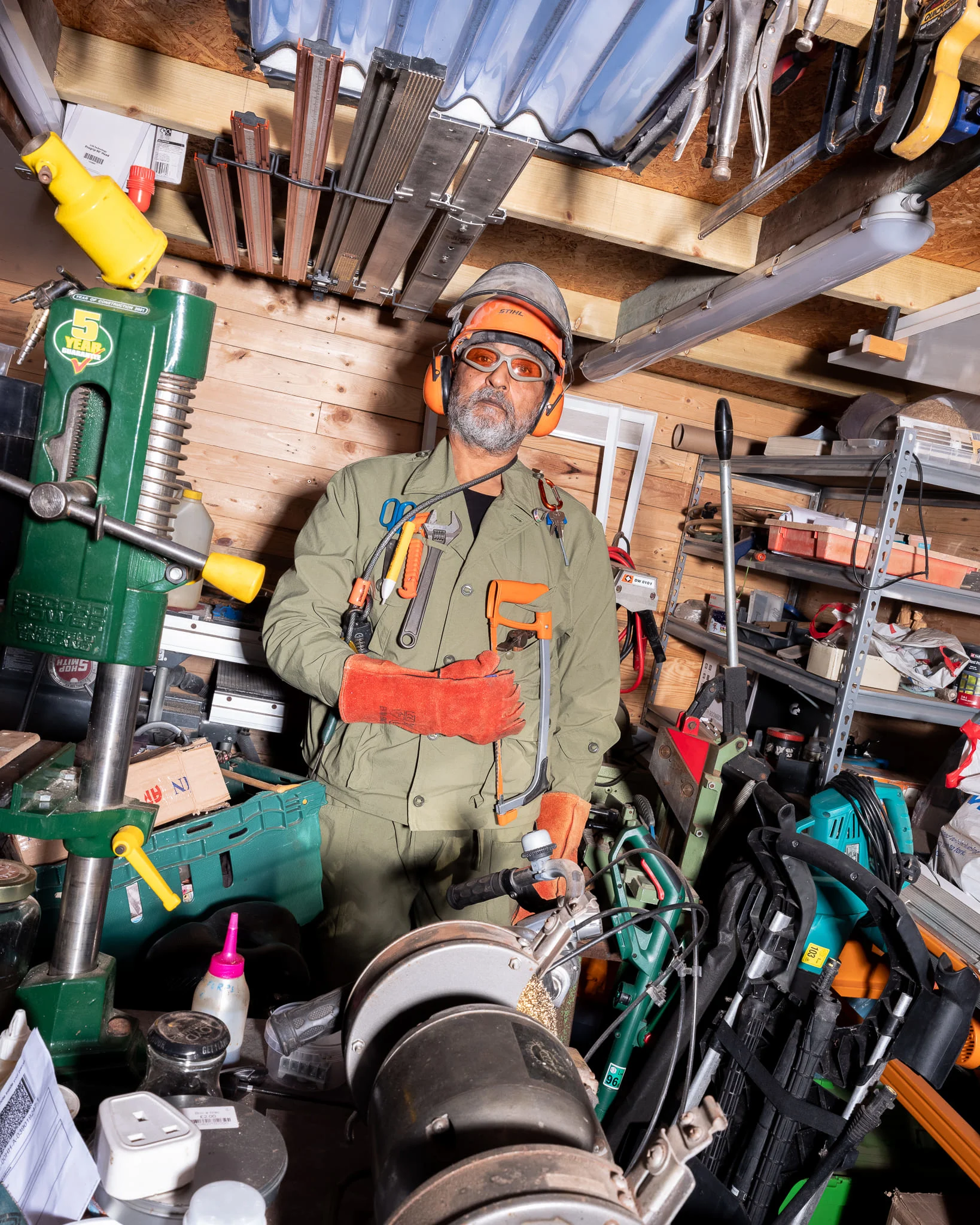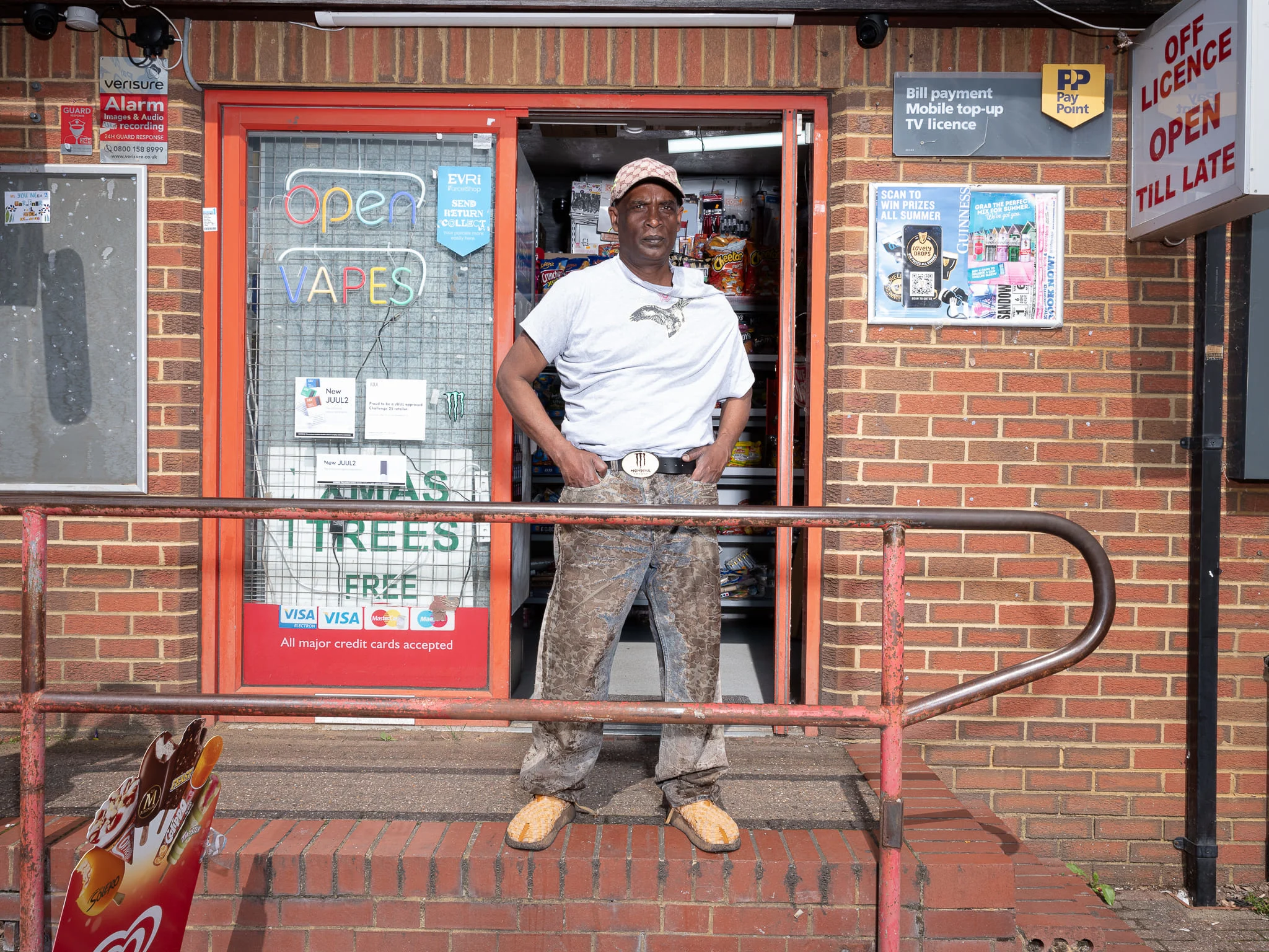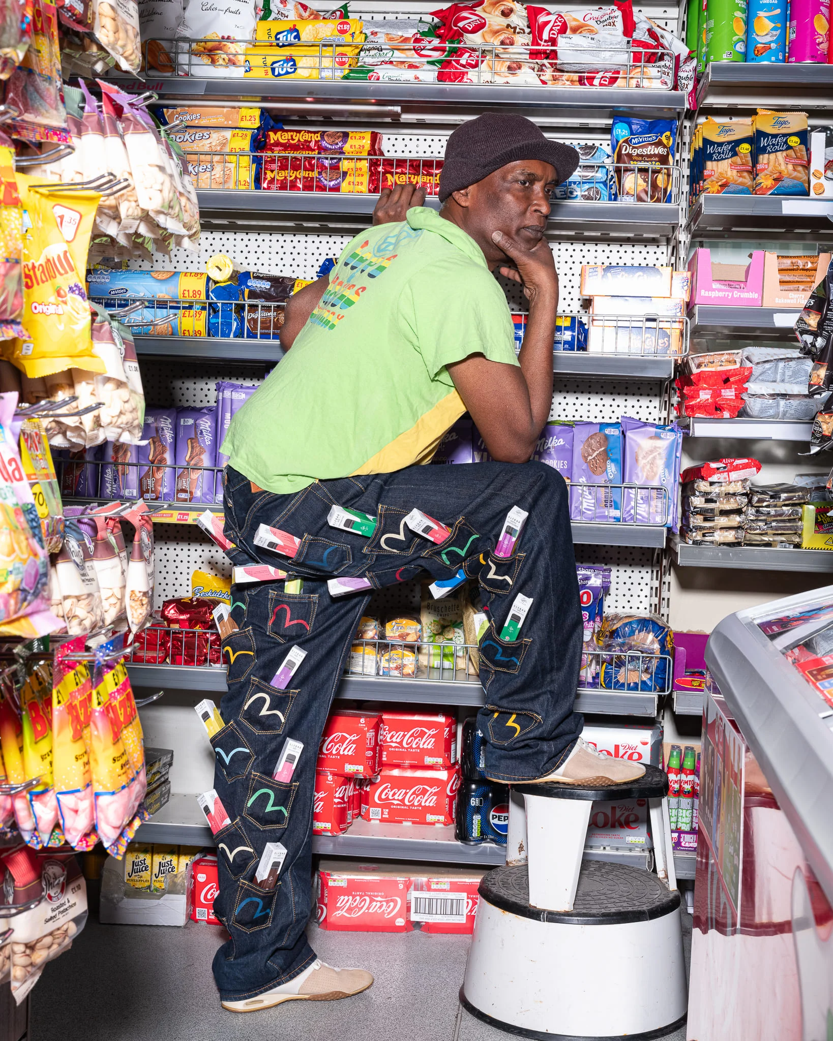 Even a fleeting glance at the “Uncle’s House” repertoire reveals this care. Sabir's House sees the DIY-loving uncle styled in khaki overalls and gear, posing on top of his shed's roof with the endless sky in the background. Mano, the owner of a newsagents, is styled in a chocolate brown hat, a pistachio colored tee and denims with 12 pockets, each filled with different flavored Elfbar vapes. One leg perched on a stool and his hand cupping his chin, the uncle stares into the abyss in deep thought. And for the creatives, the pose and the framing were just as intentional. “We want every image to be authoritative and we want the uncles to look strong and proud,” says Khan, “and Jordan has been pivotal in establishing this language of composition.”
